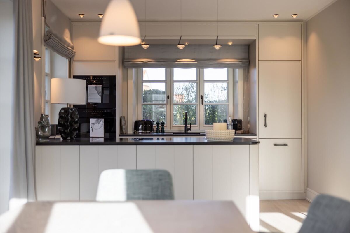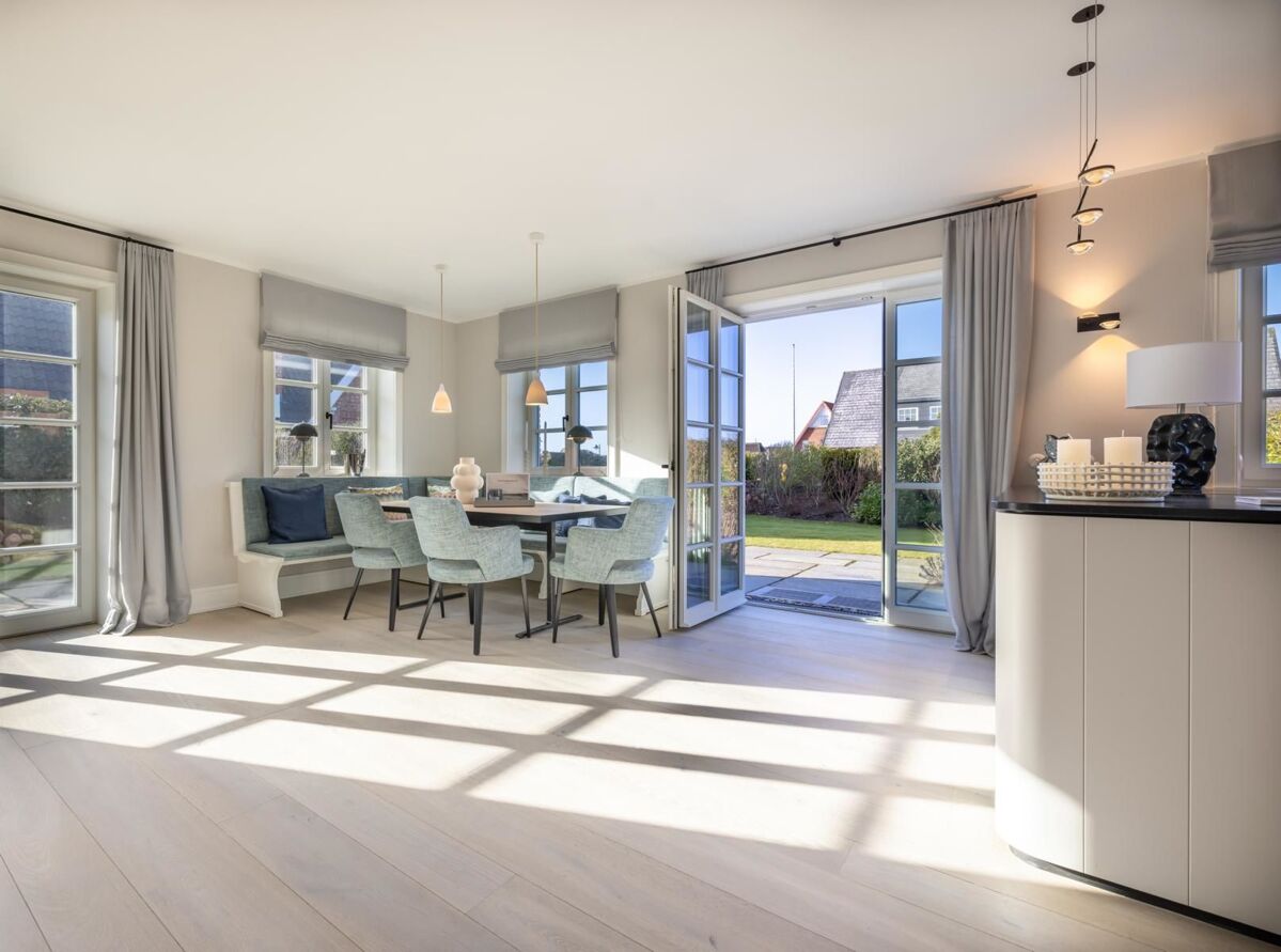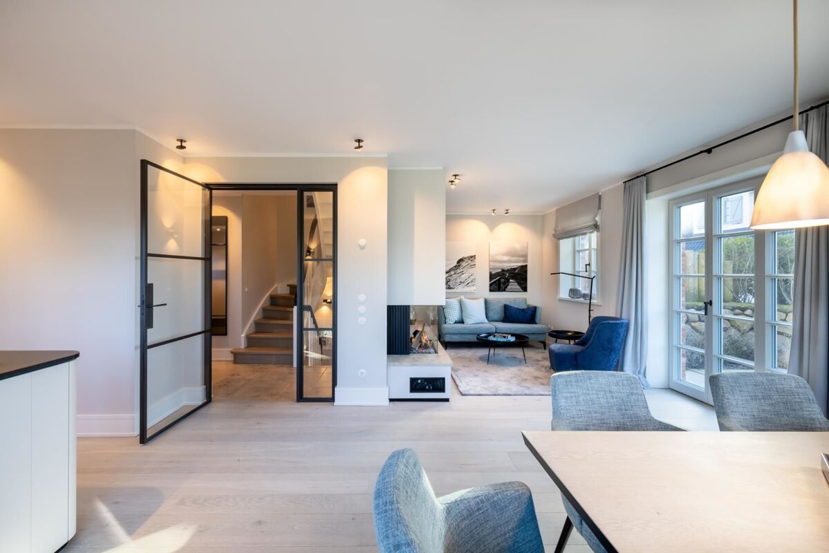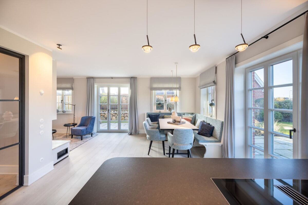 Dieses exklusive Hausteil steht inmitten einer grünen Idylle, eingebettet in typische Sylter Architektur im ruhigen Nordwesten des Ortes. Schon auf den ersten Blick verspricht sie ein Maximum an Wohnqualität: Einladende Behaglichkeit und entspannte Exklusivität. Typisch Sylt.