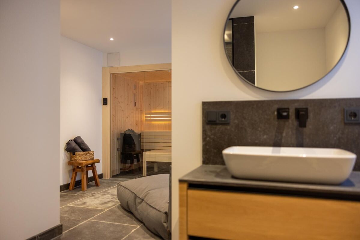 Für entspannte Momente im eigenen Zuhause steht ein aufwendig gestalteter Wellnessbereich mit Sauna und Liegemöglichkeiten zur Verfügung.